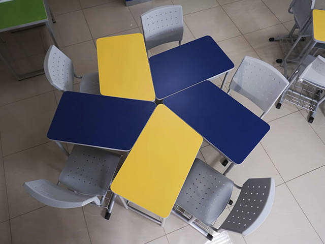 Mesas para equipar aulas de aprendizaje cooperativo.
